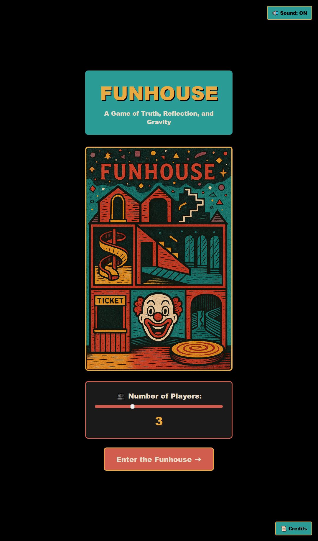 Step into the Funhouse: a quick, browser-based card game that turns small prompts into real conversations. Play solo or with friends (1–8 players). Draw, pass, reflect, and when the slide begins, answer together.