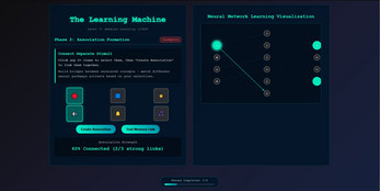 Small networks combine — what begins as random noise organizes into coherent associations. You’ve built the foundation of learning machines.