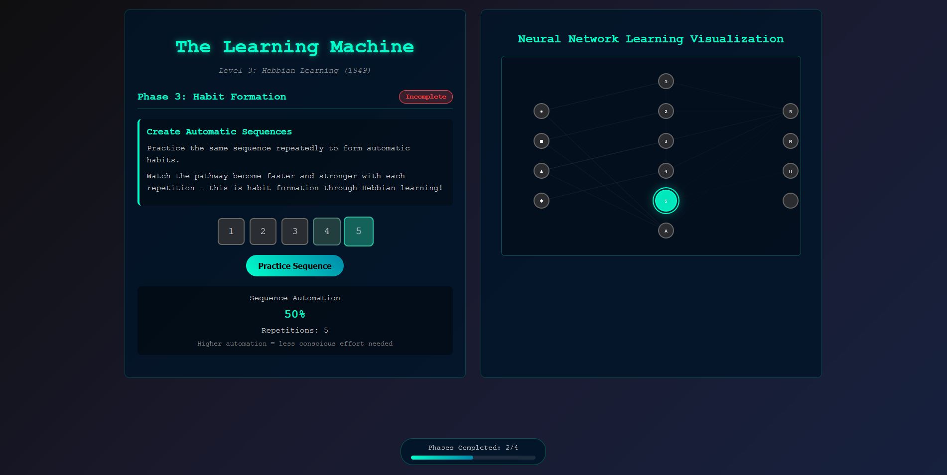 An interactive exploration of Hebbian learning — how simple rules of association shape perception, memory, and intelligence. From neurons to algorithms, the same principle builds complexity: repeated co-activation strengthens connections. You’ll see how patterns emerge from practice itself.